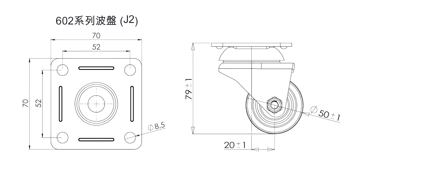 602 Double PA Wheel Series - Flate Plate Mounting 6501-050
