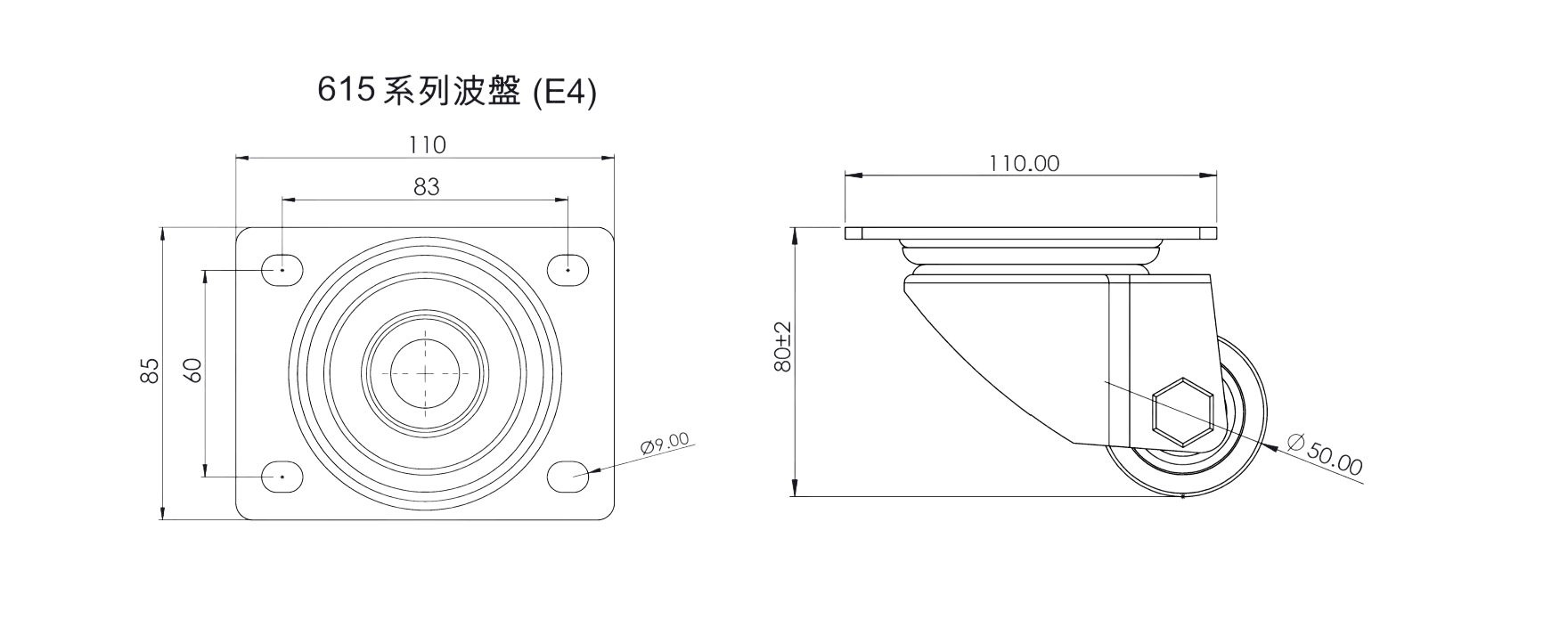 615 SUS PA Wheel Series - Flate Plate Mounting 6215-050