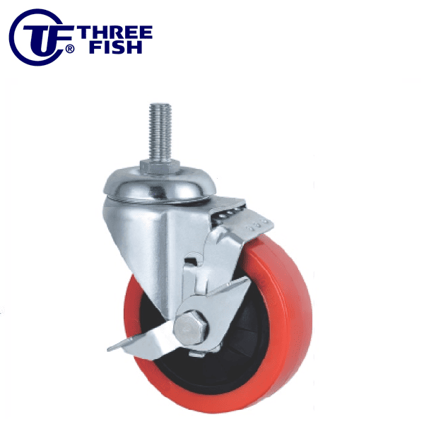 4吋PU-牙桿塑料雙踏前雙剎輪