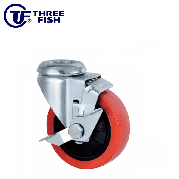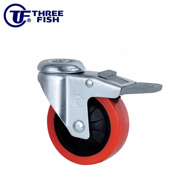 4吋PU-穴式塑料雙踏前雙剎車輪