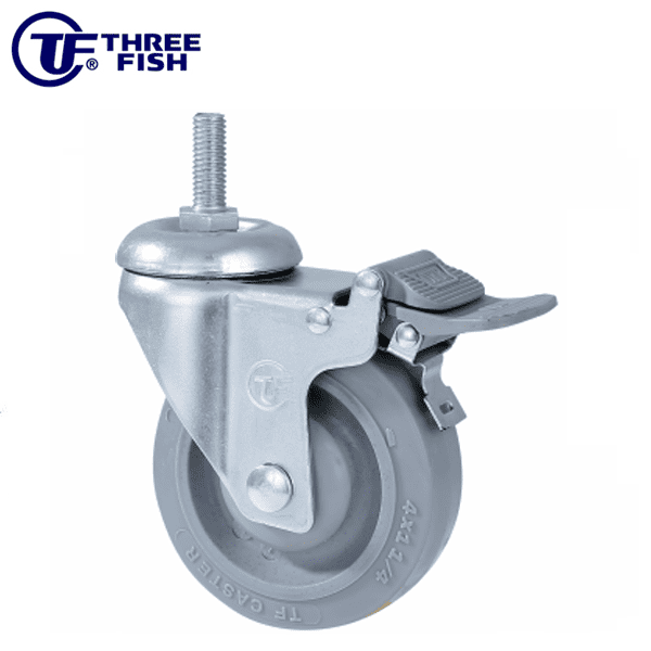 5吋TPR-牙桿塑料雙踏前雙剎車輪