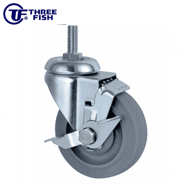 5吋TPR-牙桿塑料單踏前雙剎車輪