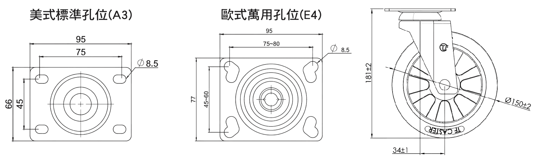 303 導電TPR輪系列 - 平底式3229-150