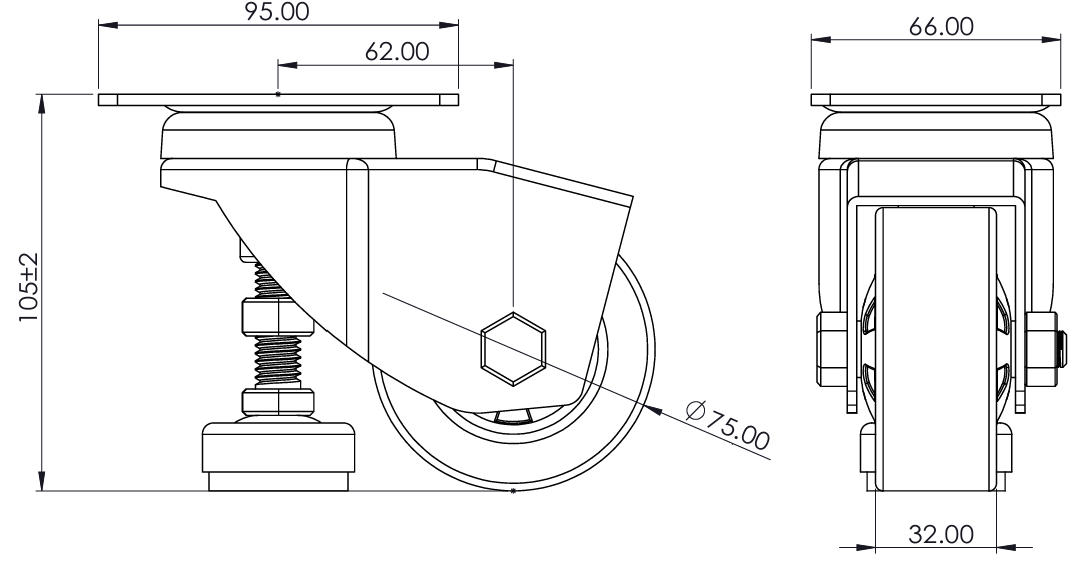 320 水平調節尼龍輪系列 - 平底式 3339-080