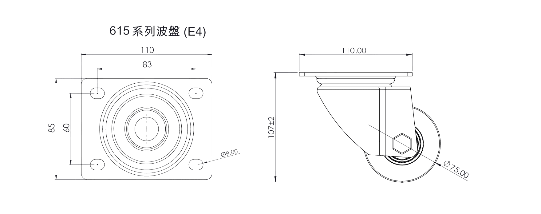 615 不銹鋼PA尼龍輪系列 - 平底式6215-075