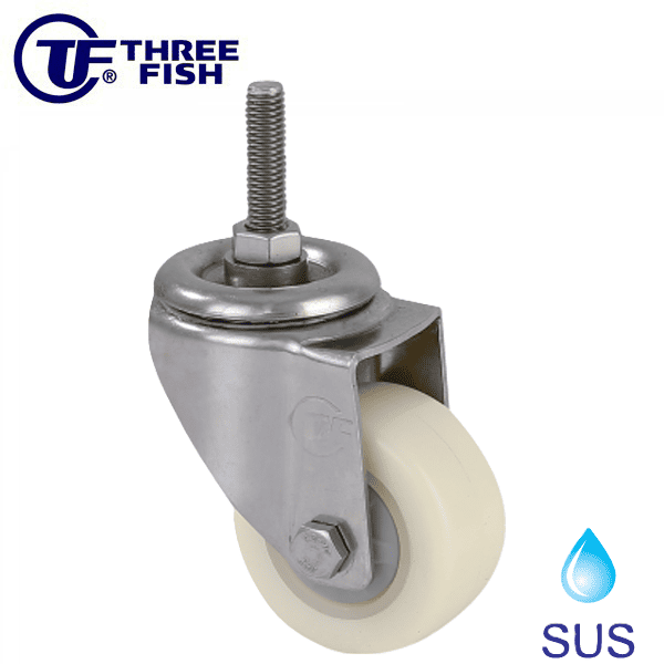 3吋PA-不銹鋼牙桿塑料單踏前雙剎車輪