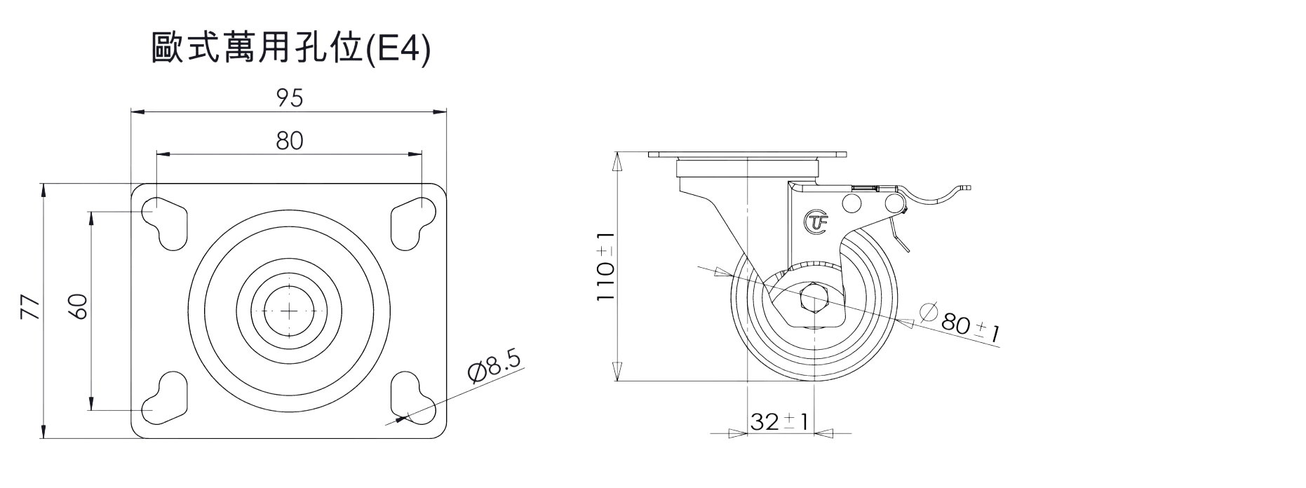 常見的剎車類型有:側剎(Side Brake)、雙剎(Total Lock)、踏板剎車(Pedal Brake)等。選擇時需根據設備移動頻率、安全性要求及操作便利性進行考量。若常需固定位置,建議選用雙剎設計。