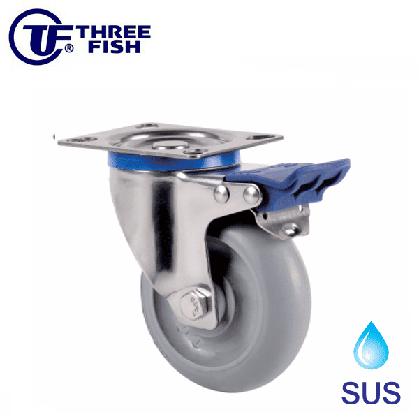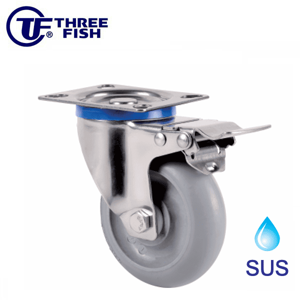 4吋TPR-不銹鋼塑料單踏前雙剎車輪