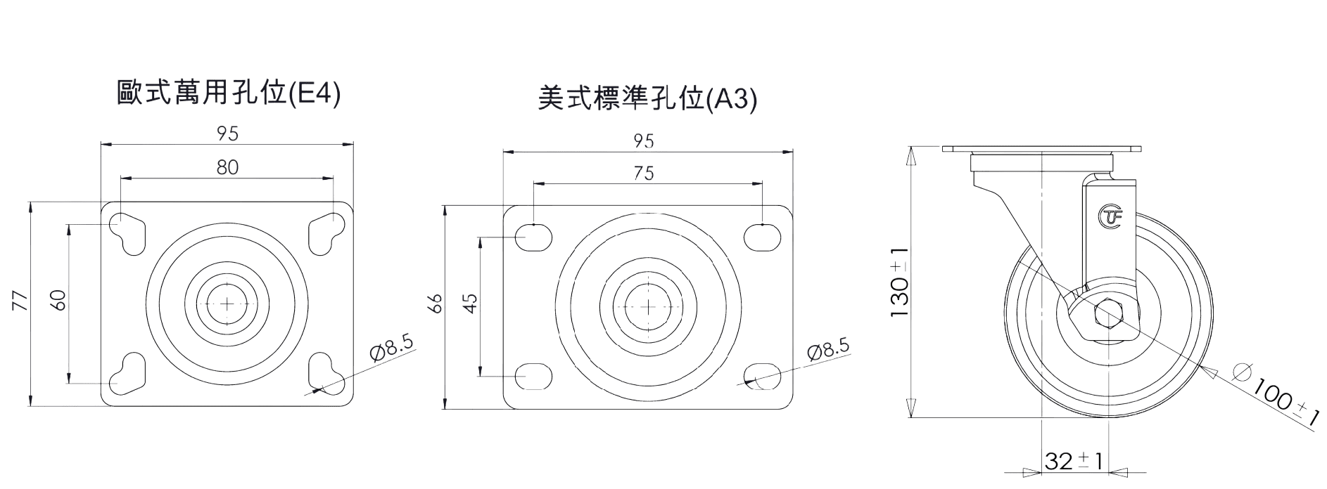 408 不銹鋼TPR輪系列 - 平底式3404-100