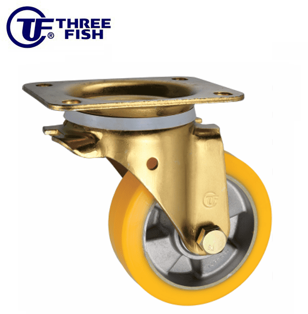 6吋PU-金屬單踏後雙剎車輪