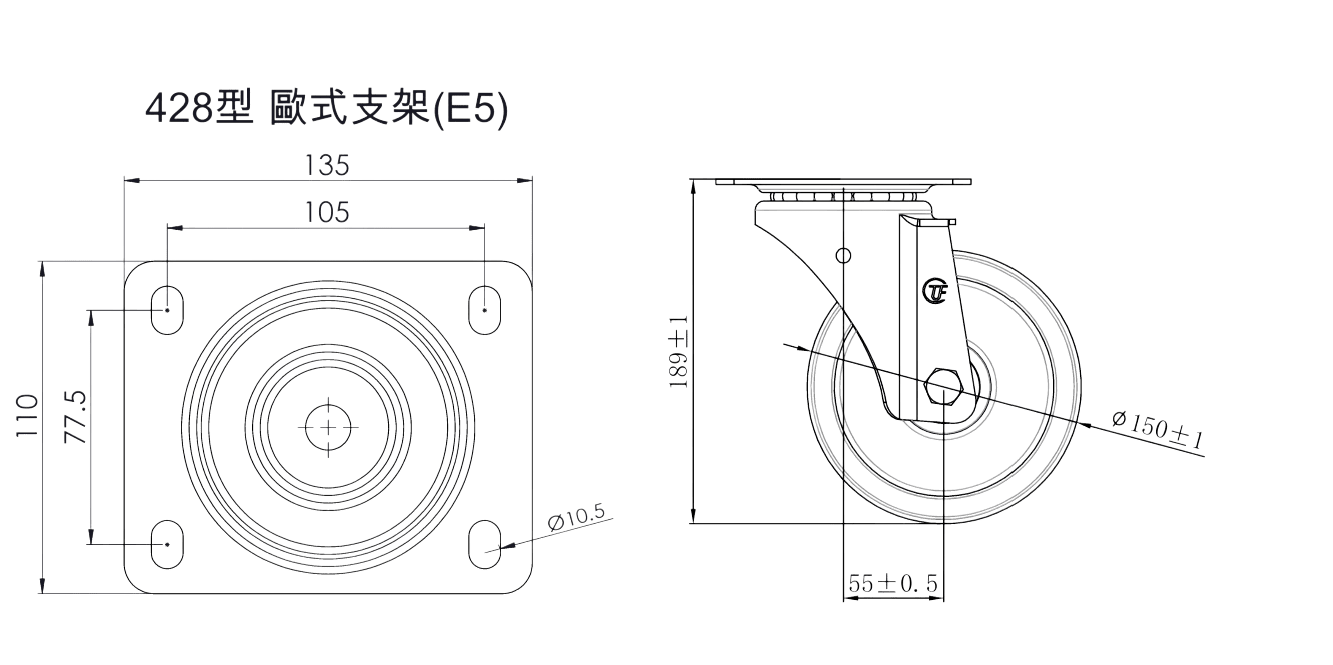 428 不銹鋼滾針PA尼龍輪系列 - 平底式4306-150