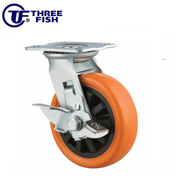 6吋PU-金屬單踏前雙剎車輪