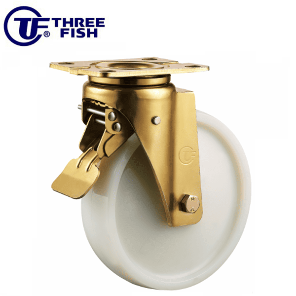 常見的剎車類型有:側剎(Side Brake)、雙剎(Total Lock)、踏板剎車(Pedal Brake)等。選擇時需根據設備移動頻率、安全性要求及操作便利性進行考量。若常需固定位置,建議選用雙剎設計。
